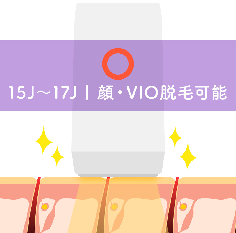 毛根まで届く照射パワーでありながら、デリケートな「顔・VIO」まで脱毛できる脱毛器であれば照射パワー「15J~17J」の脱毛器がおすすめです。