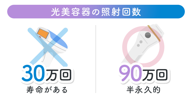脱毛器には照射回数の「上限」があります。選ぶ際は、半永久的に照射可能な「90万回以上」のものを選びましょう!
