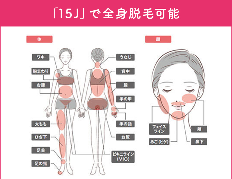 ①「15J」の出力数で、しっかり全身脱毛ができる!